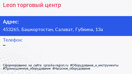 Leon, торговый центр по адресу 453265, Башкортостан, Салават, Губкина, 13а в дальнейшем Организация, размещена в следующих категориях: