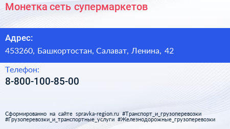 Монетка, сеть супермаркетов по адресу 453260, Башкортостан, Салават, Ленина, 42 в дальнейшем Организация, размещена в следующих категориях: