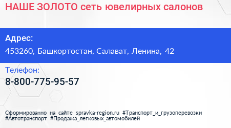 НАШЕ ЗОЛОТО, сеть ювелирных салонов по адресу 453260, Башкортостан, Салават, Ленина, 42 в дальнейшем Организация, размещена в следующих категориях: