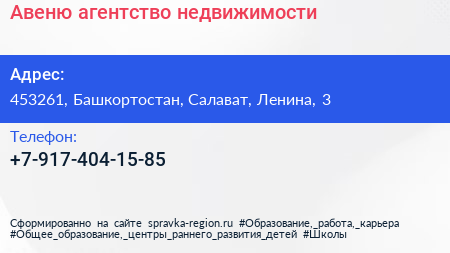 Авеню, агентство недвижимости по адресу 453261, Башкортостан, Салават, Ленина, 3 в дальнейшем Организация, размещена в следующих категориях: