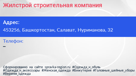 Жилстрой, строительная компания по адресу 453256, Башкортостан, Салават, Нуриманова, 32 в дальнейшем Организация, размещена в следующих категориях: