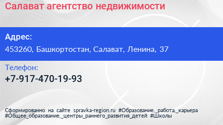 Салават, агентство недвижимости по адресу 453260, Башкортостан, Салават, Ленина, 37 в дальнейшем Организация, размещена в следующих категориях:
