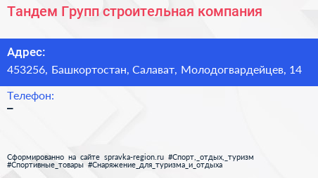 Тандем Групп, строительная компания по адресу 453256, Башкортостан, Салават, Молодогвардейцев, 14 в дальнейшем Организация, размещена в следующих категориях: