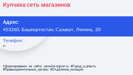 Купчиха, сеть магазинов по адресу 453260, Башкортостан, Салават, Ленина, 20 в дальнейшем Организация, размещена в следующих категориях: