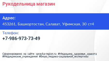Рукодельница, магазин по адресу 453261, Башкортостан, Салават, Уфимская, 30 ст4 в дальнейшем Организация, размещена в следующих категориях:
