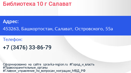 Библиотека №10, г. Салават по адресу 453263, Башкортостан, Салават, Островского, 55а в дальнейшем Организация, размещена в следующих категориях: