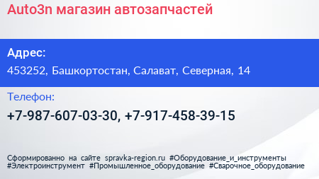 Auto3n, магазин автозапчастей по адресу 453252, Башкортостан, Салават, Северная, 14 в дальнейшем Организация, размещена в следующих категориях: