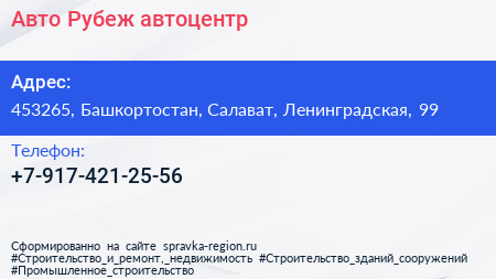 Авто-Рубеж, автоцентр по адресу 453265, Башкортостан, Салават, Ленинградская, 99 в дальнейшем Организация, размещена в следующих категориях: