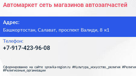 Автомаркет, сеть магазинов автозапчастей по адресу Башкортостан, Салават, проспект Валиди, 8 к1 в дальнейшем Организация, размещена в следующих категориях: