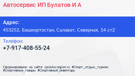 Автосервис, ИП Булатов И.А. по адресу 453252, Башкортостан, Салават, Северная, 14 ст2 в дальнейшем Организация, размещена в следующих категориях: