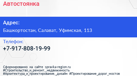 Автостоянка по адресу Башкортостан, Салават, Уфимская, 113 в дальнейшем Организация, размещена в следующих категориях: