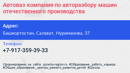 Автоваз, компания по авторазбору машин отечественного производства по адресу Башкортостан, Салават, Нуриманова, 37 в дальнейшем Организация, размещена в следующих категориях: