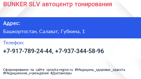 BUNKER SLV, автоцентр тонирования по адресу Башкортостан, Салават, Губкина, 1 в дальнейшем Организация, размещена в следующих категориях:
