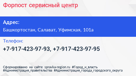 Форпост, сервисный центр по адресу Башкортостан, Салават, Уфимская, 101а в дальнейшем Организация, размещена в следующих категориях: