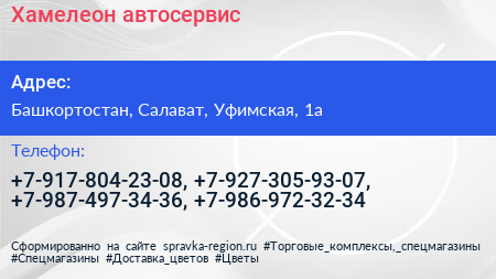 Хамелеон, автосервис по адресу Башкортостан, Салават, Уфимская, 1а в дальнейшем Организация, размещена в следующих категориях: