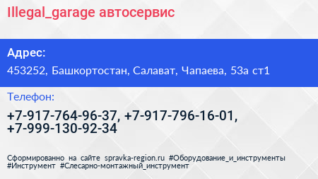 Illegal_garage, автосервис по адресу 453252, Башкортостан, Салават, Чапаева, 53а ст1 в дальнейшем Организация, размещена в следующих категориях: