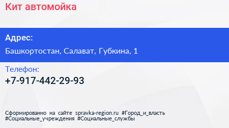 Кит, автомойка по адресу Башкортостан, Салават, Губкина, 1 в дальнейшем Организация, размещена в следующих категориях: