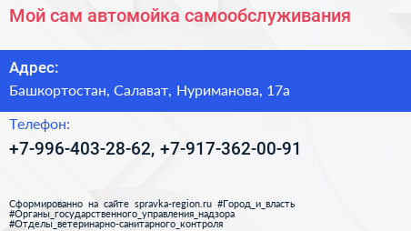 Мой сам, автомойка самообслуживания по адресу Башкортостан, Салават, Нуриманова, 17а в дальнейшем Организация, размещена в следующих категориях: