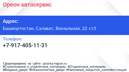 Ореон, автосервис по адресу Башкортостан, Салават, Вокзальная, 22 ст3 в дальнейшем Организация, размещена в следующих категориях: