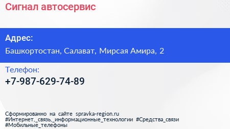 Сигнал, автосервис по адресу Башкортостан, Салават, Мирсая Амира, 2 в дальнейшем Организация, размещена в следующих категориях: