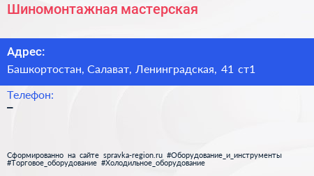 Шиномонтажная мастерская по адресу Башкортостан, Салават, Ленинградская, 41 ст1 в дальнейшем Организация, размещена в следующих категориях: