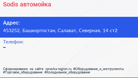 Sodis, автомойка по адресу 453252, Башкортостан, Салават, Северная, 14 ст2 в дальнейшем Организация, размещена в следующих категориях: