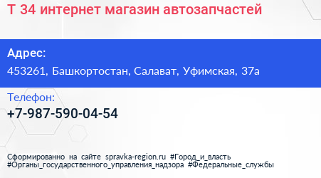 Т-34, интернет-магазин автозапчастей по адресу 453261, Башкортостан, Салават, Уфимская, 37а в дальнейшем Организация, размещена в следующих категориях: