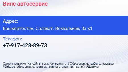 Винс, автосервис по адресу Башкортостан, Салават, Вокзальная, 3а к1 в дальнейшем Организация, размещена в следующих категориях: