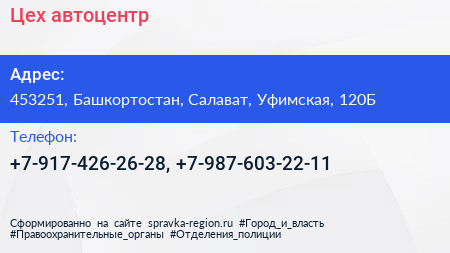 Цех, автоцентр по адресу 453251, Башкортостан, Салават, Уфимская, 120Б в дальнейшем Организация, размещена в следующих категориях: