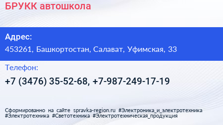 БРУКК, автошкола по адресу 453261, Башкортостан, Салават, Уфимская, 33 в дальнейшем Организация, размещена в следующих категориях: