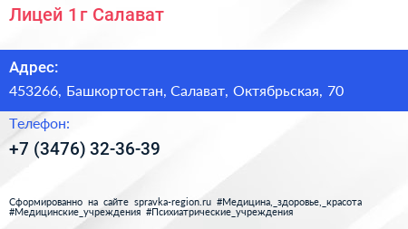 Лицей №1, г. Салават по адресу 453266, Башкортостан, Салават, Октябрьская, 70 в дальнейшем Организация, размещена в следующих категориях: