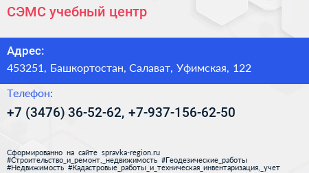 СЭМС, учебный центр по адресу 453251, Башкортостан, Салават, Уфимская, 122 в дальнейшем Организация, размещена в следующих категориях: