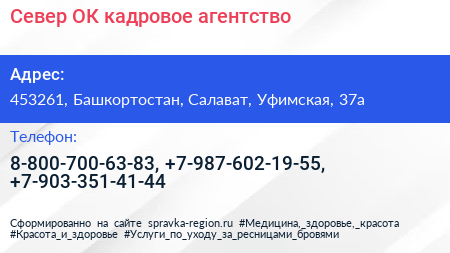 Север-ОК, кадровое агентство по адресу 453261, Башкортостан, Салават, Уфимская, 37а в дальнейшем Организация, размещена в следующих категориях: