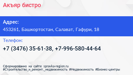 Адрес: Башкортостан, Салават, Ленина, 42 ст5