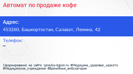 Автомат по продаже кофе по адресу 453260, Башкортостан, Салават, Ленина, 42 в дальнейшем Организация, размещена в следующих категориях:
