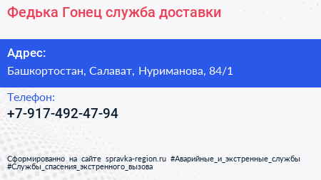 Федька Гонец, служба доставки по адресу Башкортостан, Салават, Нуриманова, 84/1 в дальнейшем Организация, размещена в следующих категориях:
