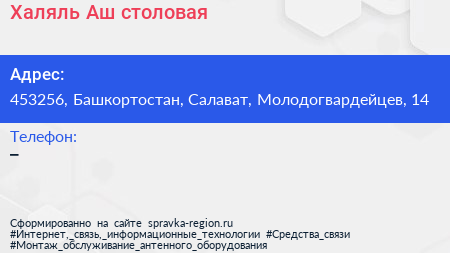 Халяль Аш, столовая по адресу 453256, Башкортостан, Салават, Молодогвардейцев, 14 в дальнейшем Организация, размещена в следующих категориях: