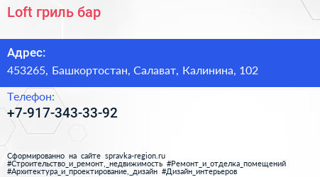 Loft, гриль-бар по адресу 453265, Башкортостан, Салават, Калинина, 102 в дальнейшем Организация, размещена в следующих категориях: