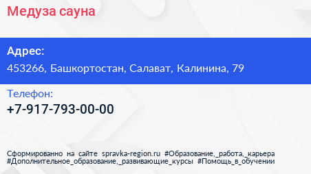 Медуза, сауна по адресу 453266, Башкортостан, Салават, Калинина, 79 в дальнейшем Организация, размещена в следующих категориях: