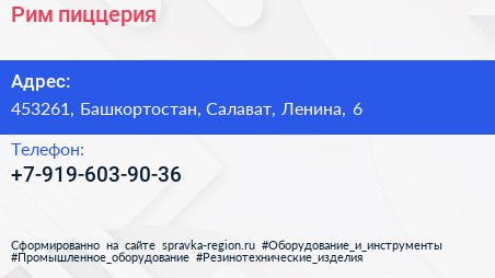 Рим, пиццерия по адресу 453261, Башкортостан, Салават, Ленина, 6 в дальнейшем Организация, размещена в следующих категориях: