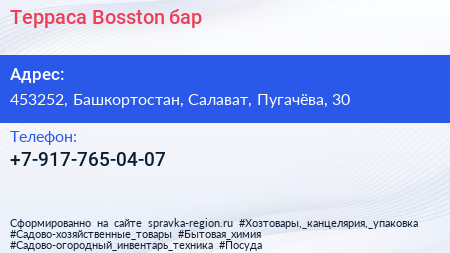 Терраса Bosston, бар по адресу 453252, Башкортостан, Салават, Пугачёва, 30 в дальнейшем Организация, размещена в следующих категориях: