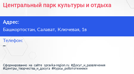 Центральный парк культуры и отдыха по адресу Башкортостан, Салават, Ключевая, 1в в дальнейшем Организация, размещена в следующих категориях:
