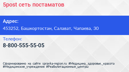 5post, сеть постаматов по адресу 453252, Башкортостан, Салават, Чапаева, 30 в дальнейшем Организация, размещена в следующих категориях: