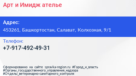 Арт и Имидж, ателье по адресу 453261, Башкортостан, Салават, Колхозная, 9/1 в дальнейшем Организация, размещена в следующих категориях: