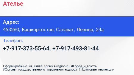Ателье по адресу 453260, Башкортостан, Салават, Ленина, 24а в дальнейшем Организация, размещена в следующих категориях: