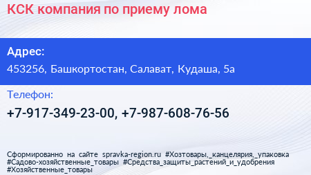 КСК, компания по приему лома по адресу 453256, Башкортостан, Салават, Кудаша, 5а в дальнейшем Организация, размещена в следующих категориях: