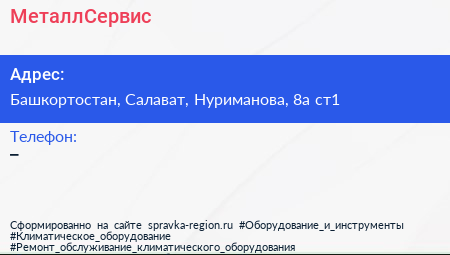 МеталлСервис по адресу Башкортостан, Салават, Нуриманова, 8а ст1 в дальнейшем Организация, размещена в следующих категориях: