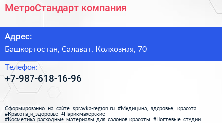 МетроСтандарт, компания по адресу Башкортостан, Салават, Колхозная, 70 в дальнейшем Организация, размещена в следующих категориях: