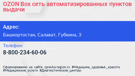 OZON Box, сеть автоматизированных пунктов выдачи по адресу Башкортостан, Салават, Губкина, 3 в дальнейшем Организация, размещена в следующих категориях: