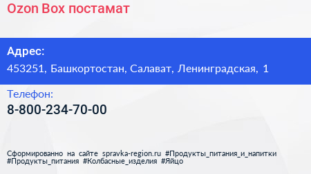 Ozon Box, постамат по адресу 453251, Башкортостан, Салават, Ленинградская, 1 в дальнейшем Организация, размещена в следующих категориях:
